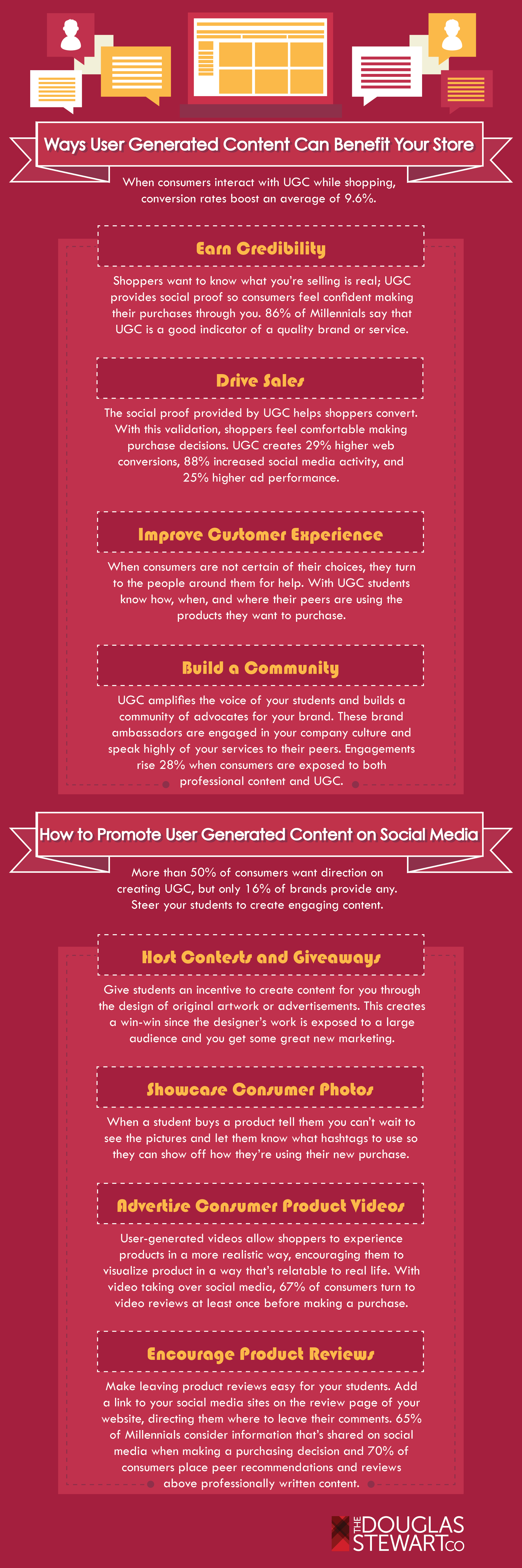 User Generated Content (UGC) has proved to be 20% more influential on purchasing decisions for consumers. Since 84% of people trust opinions and recommendations from people they know over any other form of marketing; UGC is the key to enhancing your store’s image. Let your students showcase their creativity and tell their own stories with UGC. Not only will these social media posts be visible to you, they will be visible to all of their friends and followers on social media too. That’s double the exposure with little to no effort on your part.