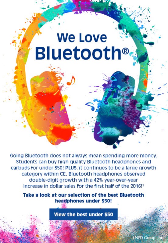 The Best Bluetooth Headphones Under $50 This entry was posted on July 14, 2017 by varconnection, in back-to-school, DSC, merchandising, Retail Tips, Sales and tagged back-to-school, college store, retail trends, sales tips. Bookmark the permalink. Leave a comment Stock up on affordable Bluetooth for Back-to-School! See our selection of the best Bluetooth headphones under $50. See Bluetooth under $50 Available in Canada! Share this: Click to share on X (Opens in new window) X Click to share on Facebook (Opens in new window) Facebook Like Loading... Related