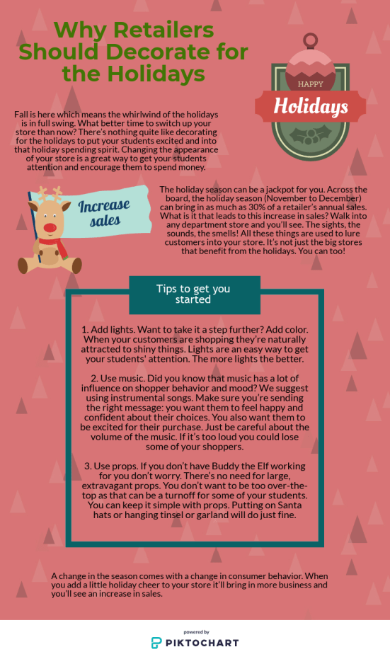 Why Retailers Should Decorate For The Holidays This entry was posted on November 6, 2018 by varconnection, in best practices, Campus Store, Campus store management, Customer Service, DSC, Holiday Shopping, Holiday Trends, How To, marketing, retailers, Tips and Tricks, Uncategorized. Bookmark the permalink. Leave a comment Source: retaildoc.com, wehangchristmaslights.com Share this: Share on X (Opens in new window) X Share on Facebook (Opens in new window) Facebook Like Loading... Related