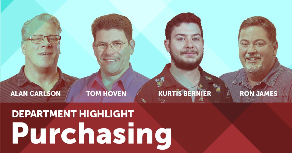 Meet our purchasing team consisting of Alan Carlson, Kurtis Bernier, Ronald James, Thomas Hoven.