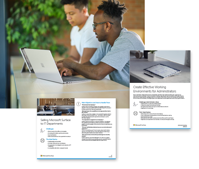 Share trainings with your staff to help them learn how to sell Microsoft Surface to your students and department faculty. Get answers to frequent objections and know what features to point out to customers.