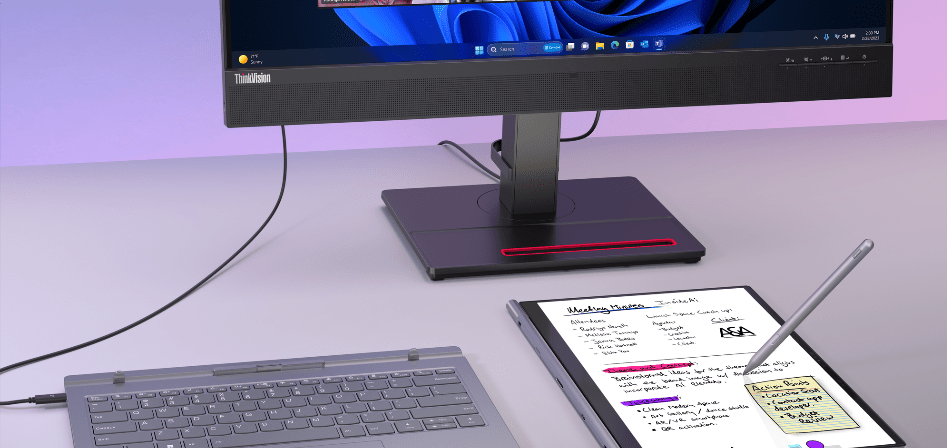 The new ThinkBook Plus Gen 5 Hybrid is a flexible hybrid solution with a laptop base system and a tablet that can work independently or together and seamlessly switch between laptop and tablet. The solution offers a unique innovation providing a Hybrid experience between Windows and Android™ system.